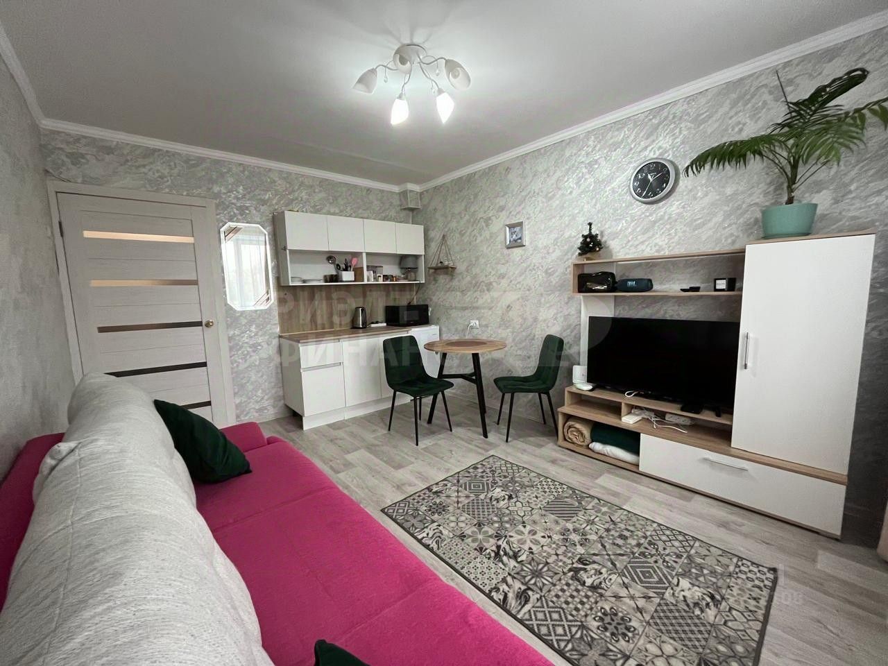 Полностью меблирована: кухонный гарнитур, холодильник, стол, два стула, диван-кровать и телевизор