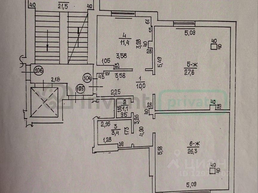 Квартира расположена на 3 этаже 7 этажного дома 2007 года постройки. Общая площадь 79.8 м2, комнаты — 27,6 и 26,3 м2, кухня — 11,4 м2, коридор — 10 м2, санузел раздельный: туалет — 1,1 м2, ванная — 3,4 м2. Окна квартиры выходят как во двор, так и на улицу.