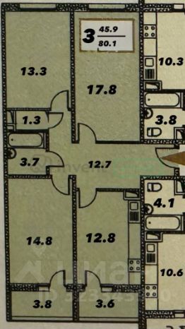 Продается просторная трехкомнатная квартира с косметическим ремонтом площадью 80 м² по цене 9,3 миллиона рублей.