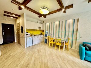 • Полная готовность к счастью: Апартаменты полностью укомплектованы стильной качественной мебелью и новой бытовой техникой. Остается ВСЁ! Включая новое постельное белье  просто приезжайте и начинайте жить или принимать гостей. Никаких хлопот!