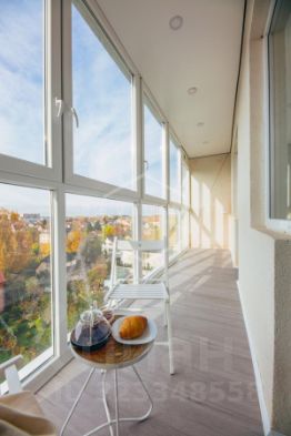 Что из кухни, что из комнаты открывается выход на панорамную лоджию, где открываются великолепные виды на панораму города! Идеальное место для утреннего кофе или вечернего отдыха.