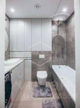 зеркало с подсветкой, встроенные шкафчики, гигиенический душ, стиральная машина, хот-поинтер.