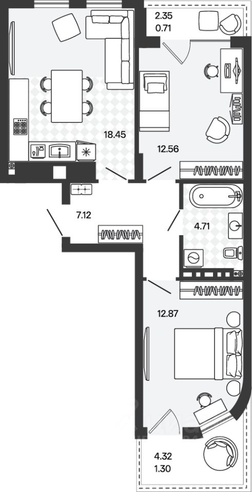 Благоустроенная инфраструктура, где мы продумали зоны отдыха, площадки активности, пространств для работы и разнообразного коммерческого наполнения.