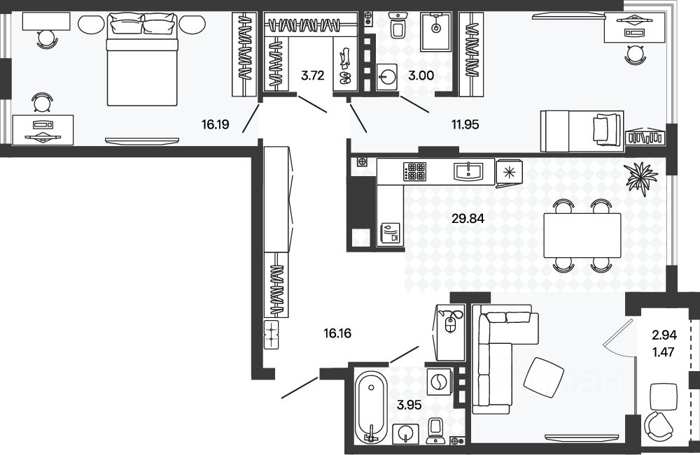 широкий выбор планировочных решений (от 36 до 195 кв.м);