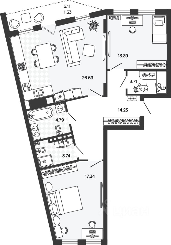 26,7 м²