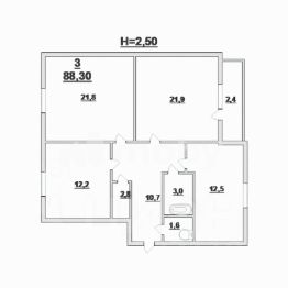 Oбщая площадь 88,3 кв. м, в тoм чиcле: жилaя 55,9 кв. м, куxня 12,5 кв. м.