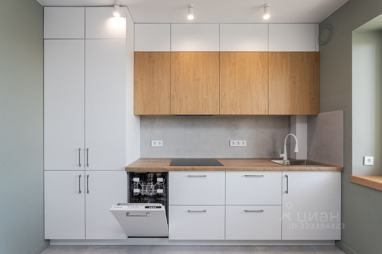 Кухня 11 кв.м. (кухонная мебель, встроенная техника (вытяжка, посудомоечная машина, варочная поверхность, холодильник, микроволновая печь, духовой шкаф).