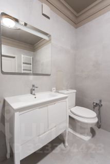 Совмещенный санузел 6,6 кв.м. (стиральная машина, гигиенический душ, зеркало, большая раковина со стильной тумбой)