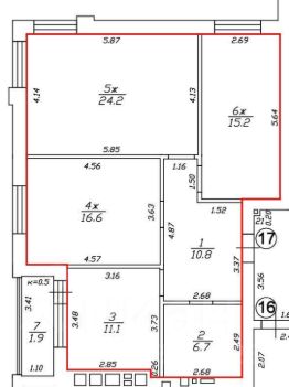 Комнаты прямоугольной формы (23+15+16 кв.м.)