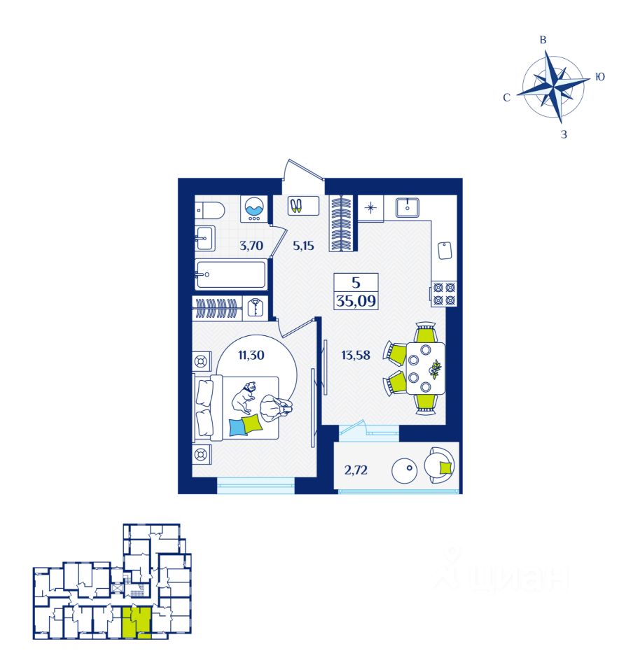 Общая площадь35,09 м²