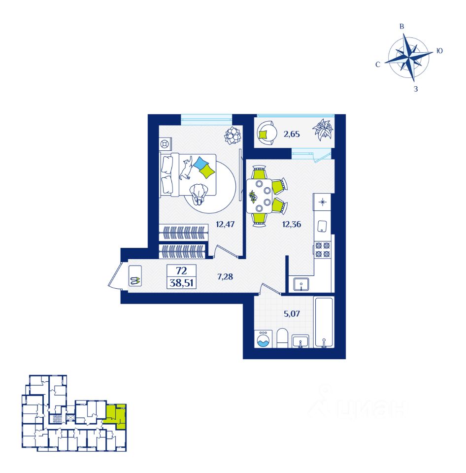 Общая площадь38,51 м²