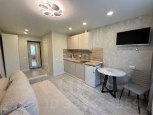 - Обустроенная кухня - студия оборудована необходимым набором бытовой техники: электроплитой, холодильником, вытяжкой, стиральной машиной и телевизором.