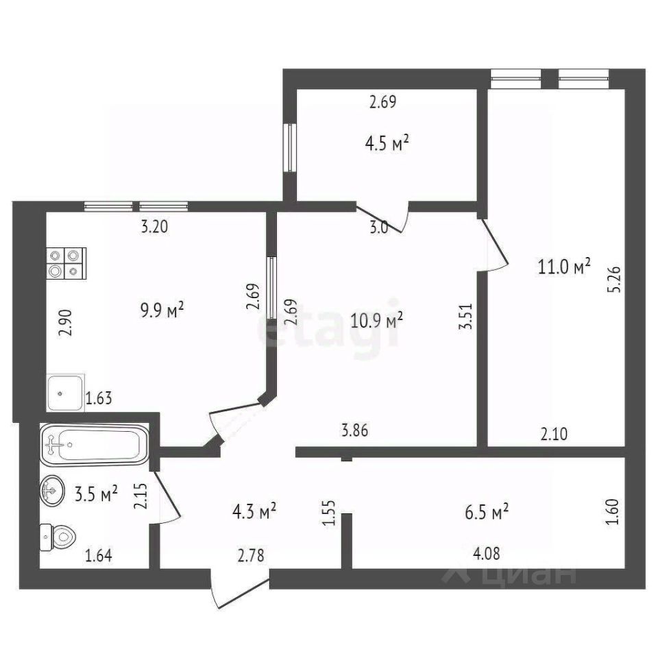В продаже двухкомнатная квартира в Гурьевске с автономным отоплением, которая предлагает уникальное и функциональное пространство за счет продуманной и узаконенной перепланировки.