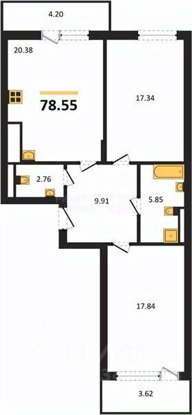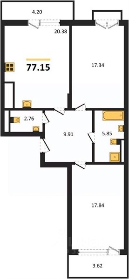 Квартира: 2 к 78,60 кв.м., 5 этаж в комплексе Аэро, 1 очередь, корп.C, сдача: 3кв. , этажей: 7, адрес Малое Исаково п., Первая ул., д. 1 корп 3, Застройщик: ГК Расцвет.
