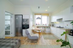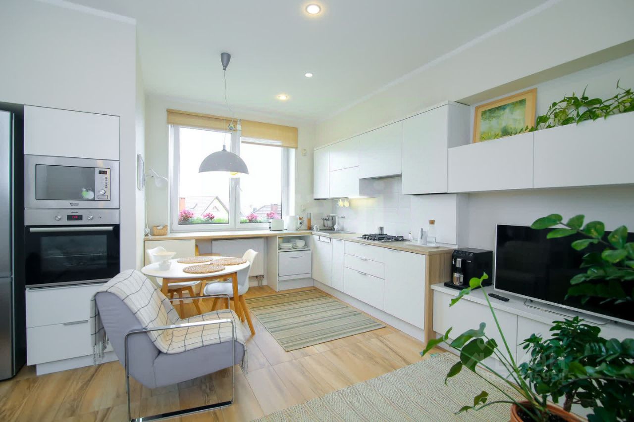 Продаётся светлая двухкомнатная квартира с качественным евроремонтом в кирпичном доме 2014 года постройки. Расположена на 3 этаже 4-этажного дома. Общая площадь — 69 м², кухня-гостиная — 15 м². Высокие потолки 3 м создают ощущение дополнительного простора.