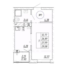 Продаётся 1-комнатная квартира в строящемся доме (Дом 16.2), срок сдачи: II-кв. 2028, общей площадью 27.99 кв.м., на 1 этаже. Новый жилой комплекс "Яркий" от застройщика "СтройИнвестиция" расположен по адресу: Калининградская обл., г. Зеленоградск, ул. Центральная улица.
