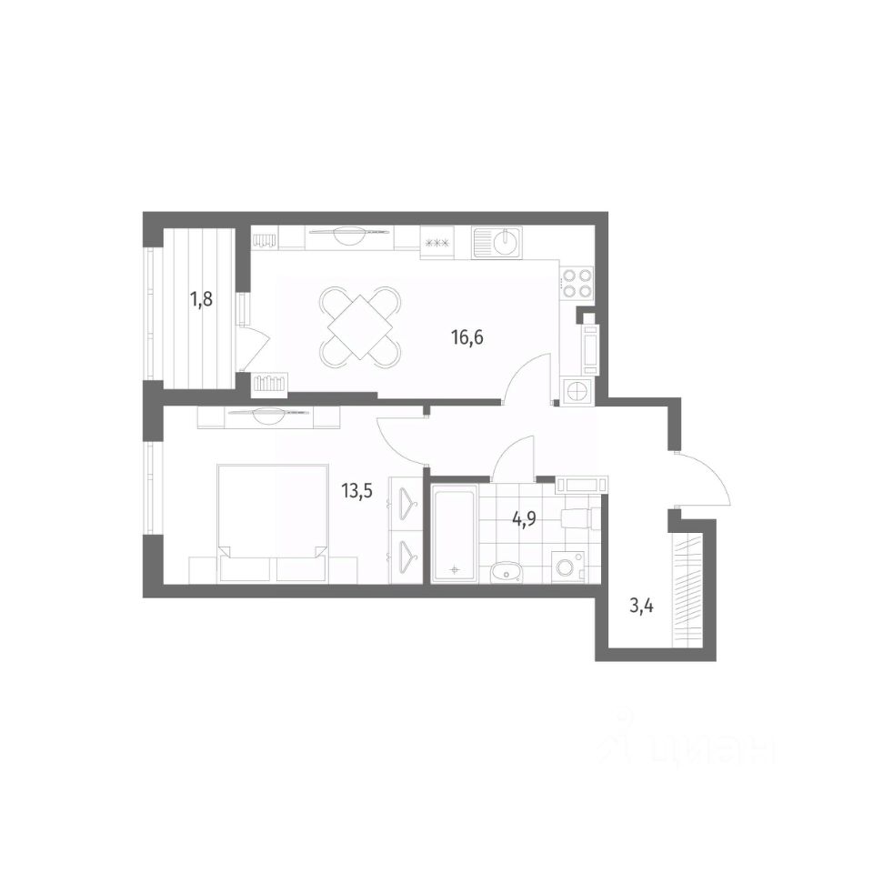в Дом на Красной от компании ГК "ТРЕСТ". Площадь кухни 16.6 м². Жилой комплекс комфорт-класса "Дом на Красной" расположен в Центральном районе Калининграда на пересечении улиц Красная и Псковская. Жилой комплекс включает в себя два дома высотой 8 этажей. Срок сдачи намечен на 4 квартал 2026 года.
