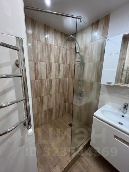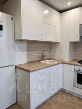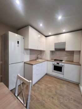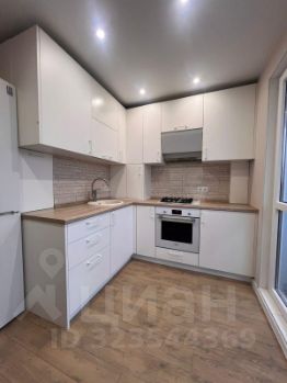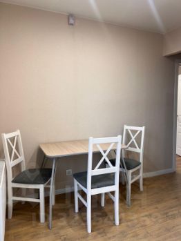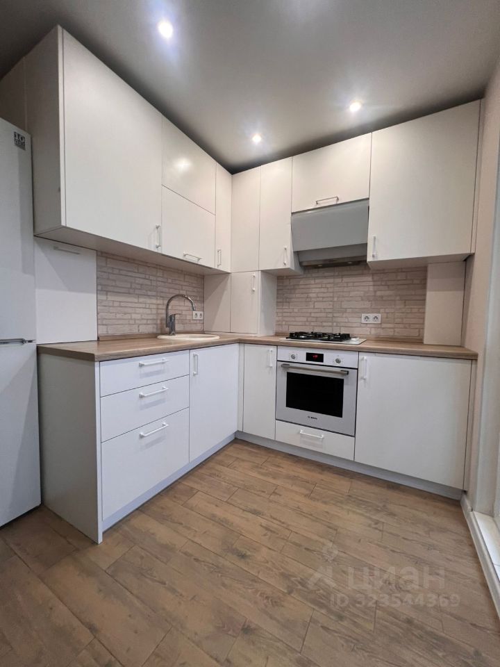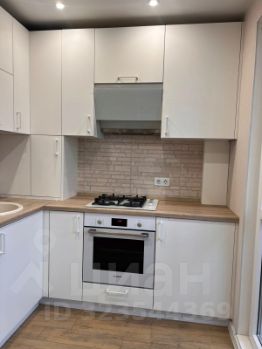 Просторная комната правильной формы ,отделка в светлых тонах. Кухня со встроенной техникой. Ванная-комната в кафеле. Остается мебель и вытяжка на кухне