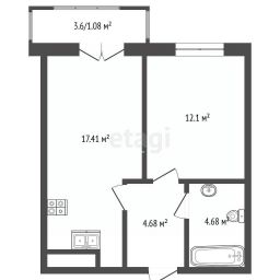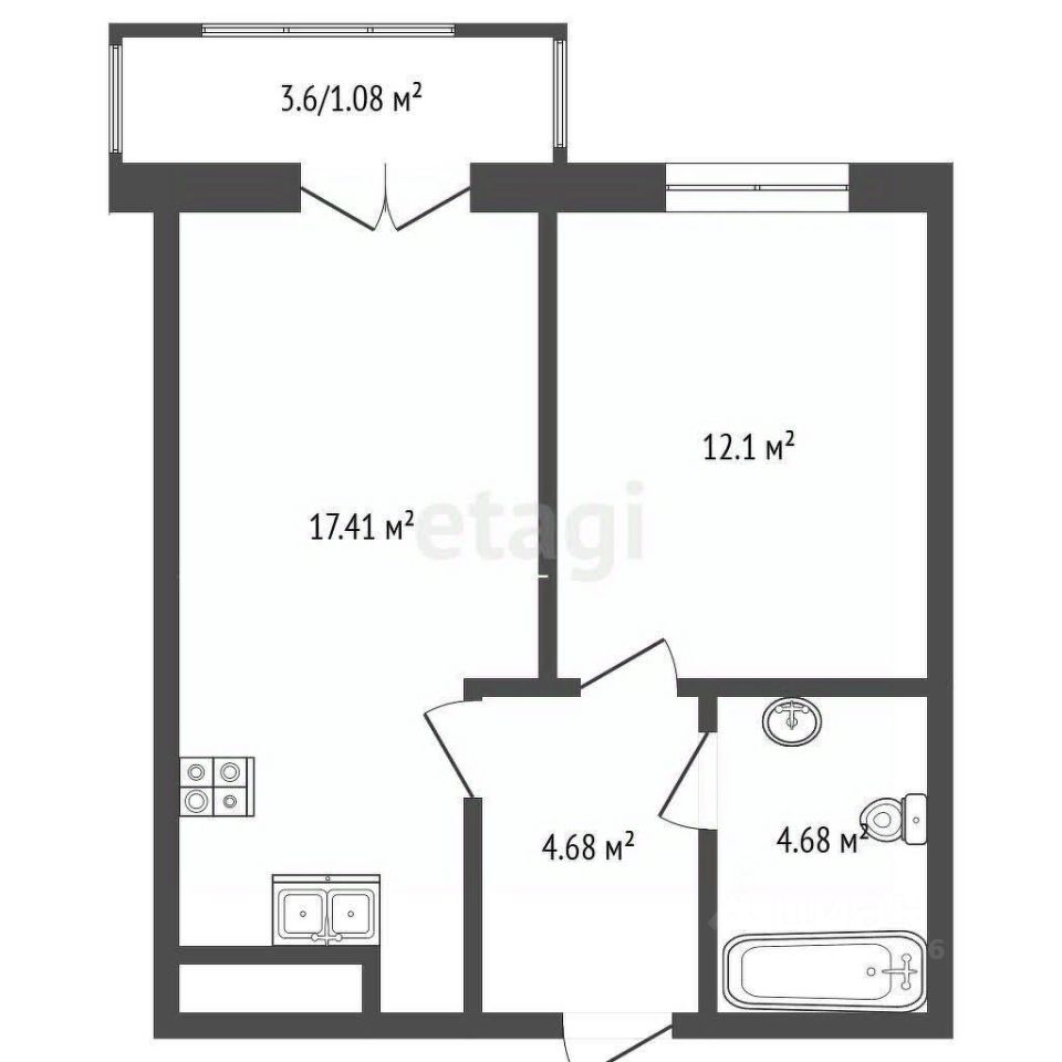 Сама квартира крупногабаритная, однокомнатная по документам. Но по факту это евродвушка: изолированная спальня - отдельная комната и просторная кухня-гостинная 17,4м2.
