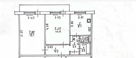Жилая 23.1 кв.м изолированные комнаты 19.1/14 кв.м с выходом на балкон
