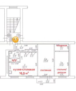 Когда-то квартира была трехкомнатной, но! Ох, уж, эти маленькие хрущевские кухни по 5 м.кВИ собственник объединил кухню и комнату и все это узаконил! ПЕРЕПЛАНИРОВКА УЗАКОНЕНА И СООТВЕТСТВУЕТ ТЕХНИЧЕСКОМУ ПАСПОРТУ!