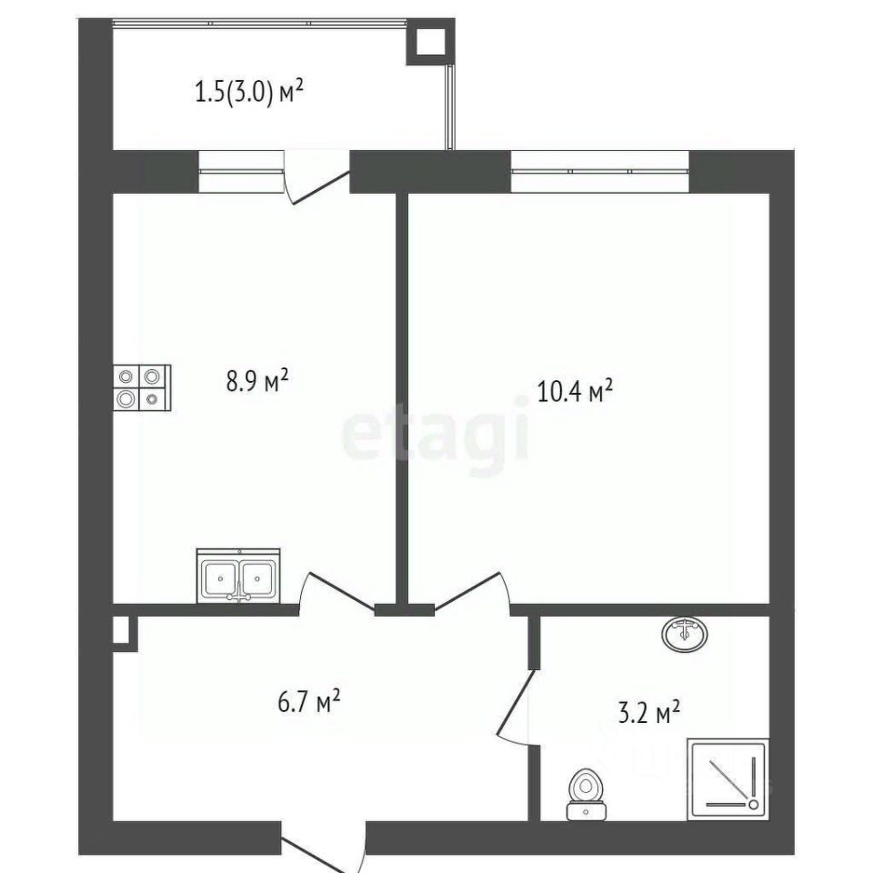 Площадь 29,6 кв.м.