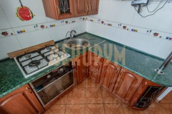 В квартире выполнен косметический ремонт, полы покрыты кафелем в коридоре, санузле и кухне, а ламинат — в комнатах. Санузел совмещённый. Квартира полностью меблирована и готова к заселению.