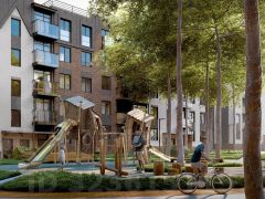 • Во дворе ЖК сохранены взрослые деревья, а территория благоустроена как парк с детскими площадками, беговой дорожкой и зонами отдыха.