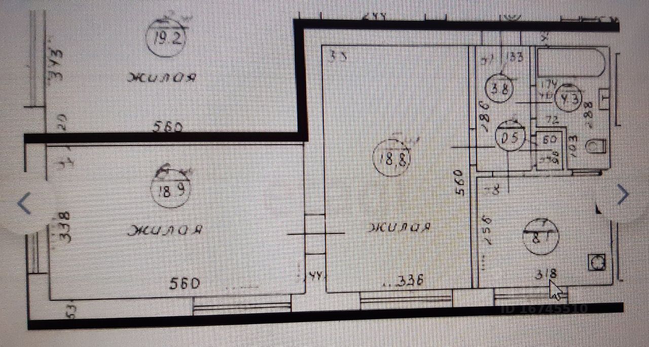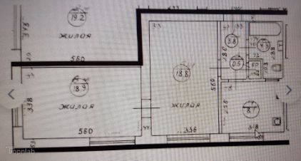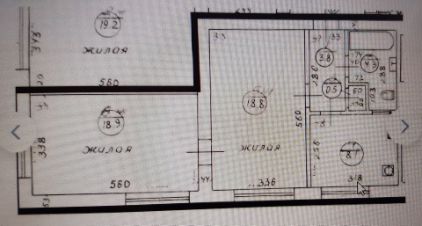 Пространство площадью 54,4 кв.м. гармонично организовано: светлые, смежно-изолированные комнаты (18,9 и 18,8 кв.м.) приглашают к отдыху, а уютная кухня в 8 кв.м. вдохновляет на кулинарные шедевры.