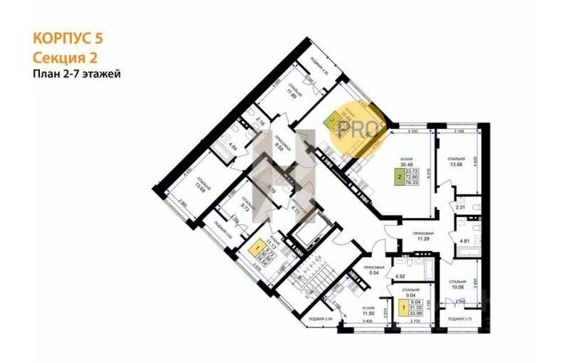 Квартира: 2 к 74,47 кв.м., 2 этаж в комплексе Включи, 5 очередь, корп.5, сдача: 1кв. , этажей: 7, адрес Гурьевск г., Героя России Катериничева ул., , Застройщик: ССК. Номер в базе: J31259L26732