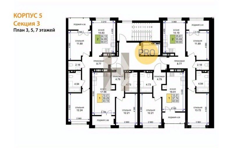 Квартира: 2 к 59,41 кв.м., 3 этаж в комплексе Включи, 5 очередь, корп.5, сдача: 1кв. , этажей: 7, адрес Гурьевск г., Героя России Катериничева ул., , Застройщик: ССК. Номер в базе: J31259L26762