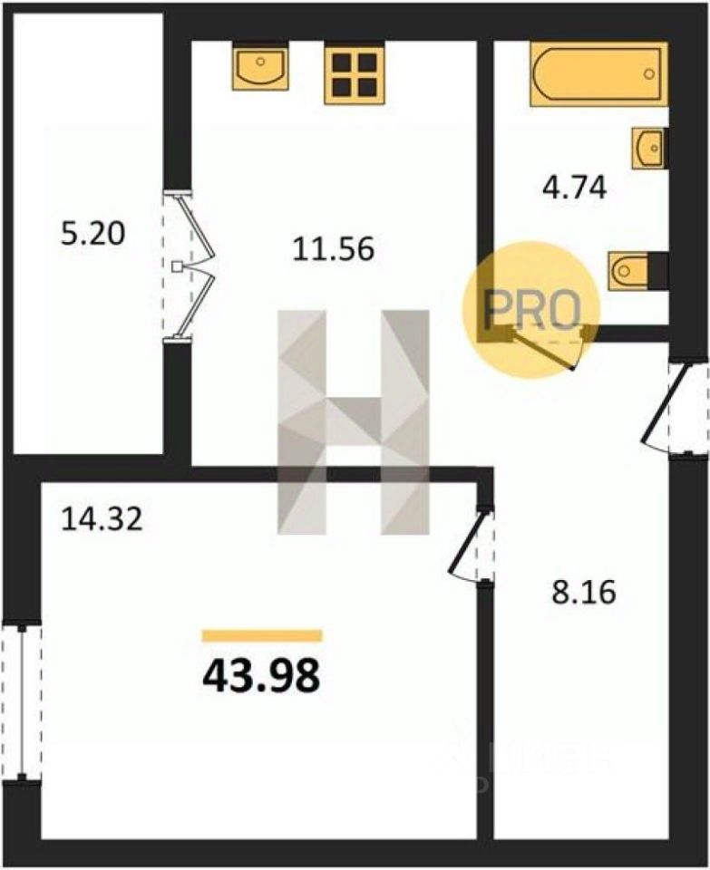 Квартира: 1 к 43,98 кв.м., 7 этаж в комплексе Включи, 5 очередь, корп.10, сдача: 3кв. , этажей: 7, адрес Гурьевск г., Героя России Катериничева ул., , Застройщик: ССК. Номер в базе: J31260L26964