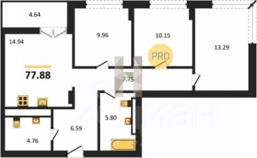 Квартира: 3 к 77,88 кв.м., 3 этаж в комплексе Включи, 1 очередь, корп.2, сдача: 4кв. , этажей: 7, адрес Гурьевск г., Героя России Катериничева ул., , Застройщик: ССК.