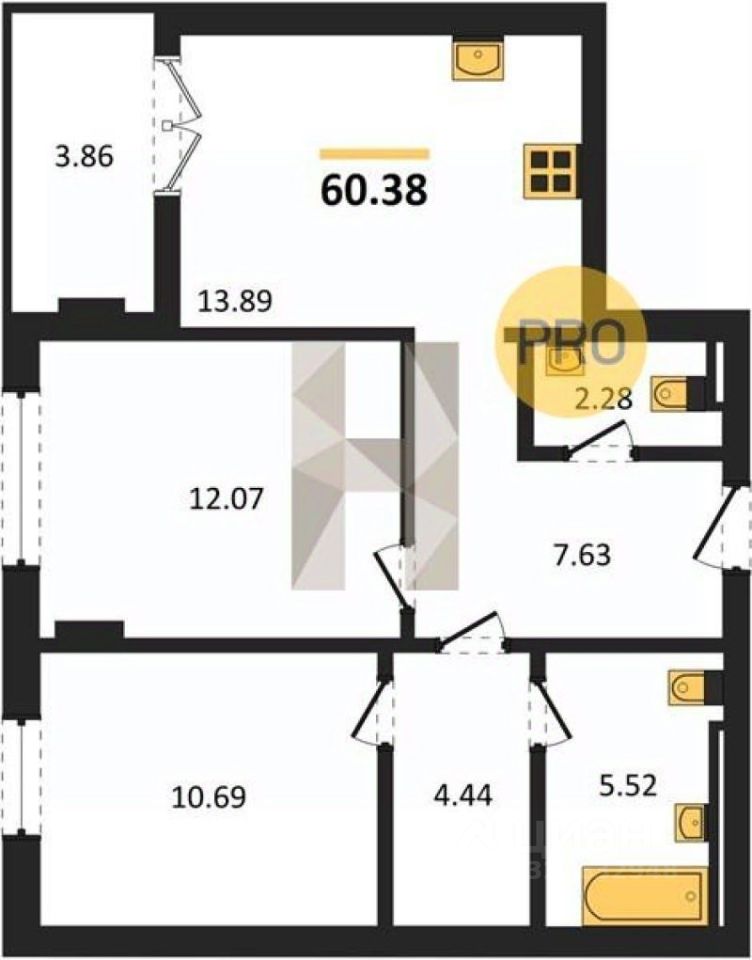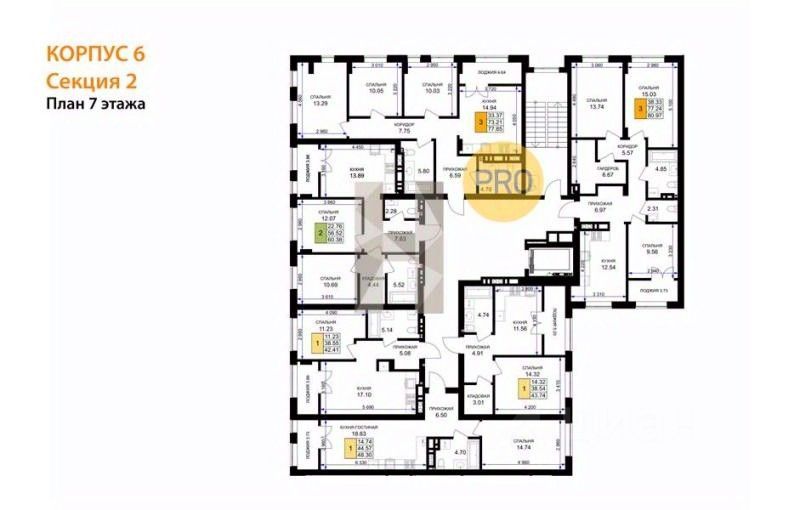 Квартира: 2 к 60,38 кв.м., 7 этаж в комплексе Включи, 4 очередь, корп.6, сдача: 1кв. , этажей: 7, адрес Гурьевск г., Героя России Катериничева ул., , Застройщик: ССК. Номер в базе: J31258L26655