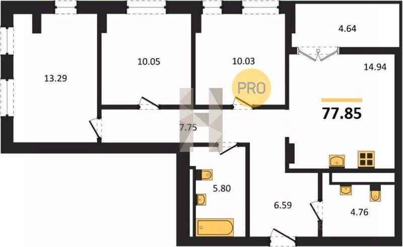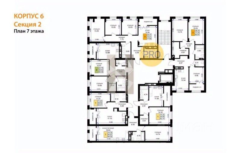 Квартира: 3 к 77,85 кв.м., 7 этаж в комплексе Включи, 4 очередь, корп.6, сдача: 1кв. , этажей: 7, адрес Гурьевск г., Героя России Катериничева ул., , Застройщик: ССК. Номер в базе: J31258L26653