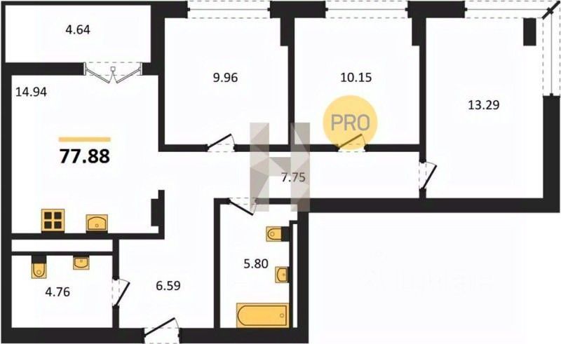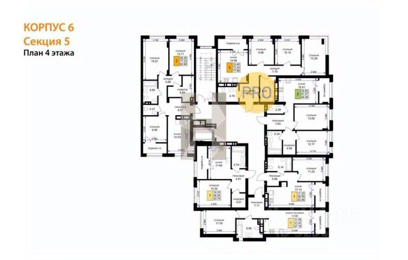 Квартира: 3 к 77,88 кв.м., 4 этаж в комплексе Включи, 4 очередь, корп.6, сдача: 1кв. , этажей: 7, адрес Гурьевск г., Героя России Катериничева ул., , Застройщик: ССК. Номер в базе: J31258L26626