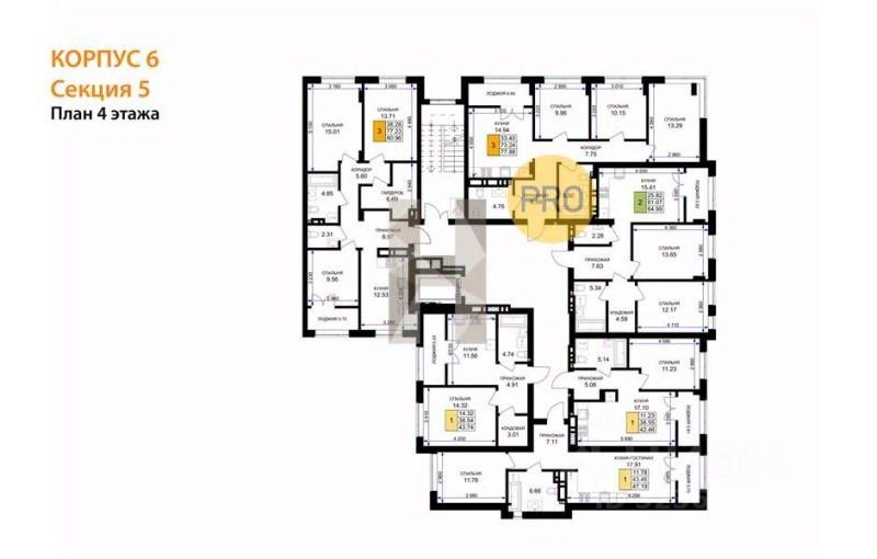 Квартира: 3 к 80,96 кв.м., 4 этаж в комплексе Включи, 4 очередь, корп.6, сдача: 1кв. , этажей: 7, адрес Гурьевск г., Героя России Катериничева ул., , Застройщик: ССК. Номер в базе: J31258L26625