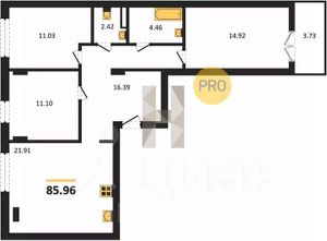 Квартира: 3 к 85,96 кв.м., 2 этаж в комплексе Включи, 4 очередь, корп.7, сдача: 1кв. , этажей: 7, адрес Гурьевск г., Героя России Катериничева ул., , Застройщик: ССК. Номер в базе: J31257L26592