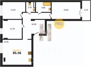 Квартира: 3 к 85,96 кв.м., 7 этаж в комплексе Включи, 4 очередь, корп.7, сдача: 1кв. , этажей: 7, адрес Гурьевск г., Героя России Катериничева ул., , Застройщик: ССК. Номер в базе: J31257L26598