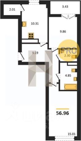 Квартира: 2 к 56,96 кв.м., 3 этаж в комплексе Включи, 4 очередь, корп.7, сдача: 1кв. , этажей: 7, адрес Гурьевск г., Героя России Катериничева ул., , Застройщик: ССК. Номер в базе: J31257L26555