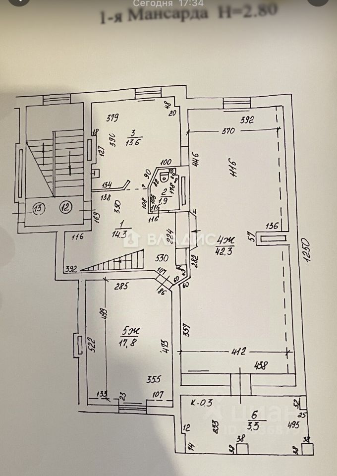 Комнаты - 42.3 кв.м., 17,8 кв.м., 11.1 и 8.9 кв.м.