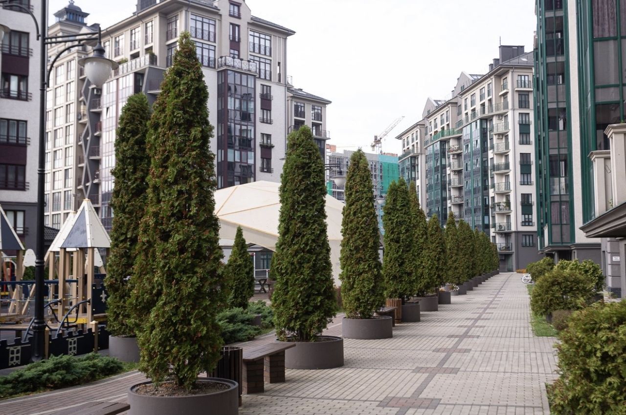 В жилом комплексе имеются 3 детских площадки с мягким покрытием, футбольное поле, баскетбольные и волейбольные площадки, беседки, теннисный корт, спортивная зона с тренажерами.
