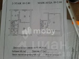 Комнат: 2 (фактически 3 с мансардой).Общая площадь: 68,1 м² + 19,5 м² мансарда.Кухня: 7,8 м².Этаж: 2 из 2 (кирпичный дом, 1945 г. постройки).Окна: на восток и запад, хорошая освещенность.Санузел: совмещенный, с большим окном.