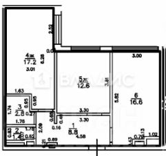 Две изолированные комнаты (12, 6 и 16, 6 м²) + кухня 17, 2 м² — идеальна для семьи