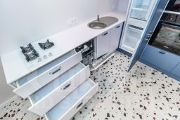 В кухне дорогая , встроенная кухня, посудомоечная машина, духовой шкаф, варочная поверхность, холодильник (лучшие бренды) .