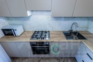 Современная техника, холодильник, духовой шкаф, плита, микроволновка и встроенная мебель. Вся техника и мебель остается.
