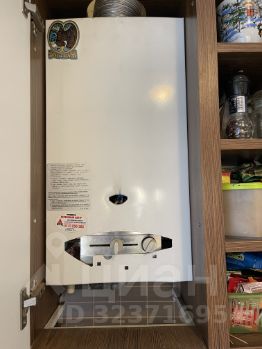 В доме центральное отопление, в квартире установлена газовая колонка для подогрева воды.