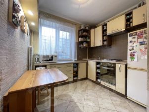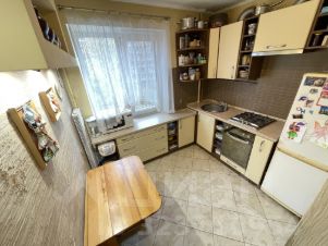 Хорошая планировка - распашонка, комнаты изолированные, кладовка, застекленный балкон. Частично требуется ремонт (переклеить обои), а в целом состояние хорошее.