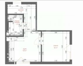 Просторная уютная планировка под однокомнатную квартиру: функциональная кухня, зона гостиной, продуманное хранение.