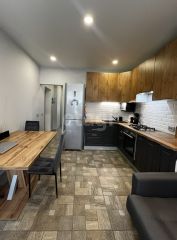 Квартира с ремонтом. На полу в кухне, санузел и лоджия плитка. В комнате ламинат. Стены покрашены.